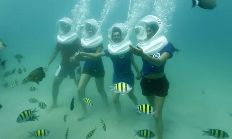 For a unique underwater experience, go for a sea walk in North Bay. With an oxygen helmet, walk on the sea bed surrounded by bright corals and schools of fish.